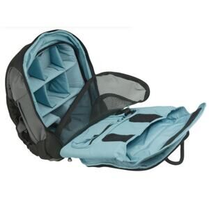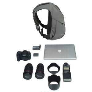 This is a camera & laptop backpack designed to weather the elements and keep you equipment dry. The main compartment is customizable. The laptop compartment is padded and can hold up to a 13" laptop or tablet. Weight is distributed evenly across the wide backpack and harness straps.