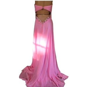Crush Pale Pink Rhinestone Bodice Strapless Plunging Back Prom Dress Size 2