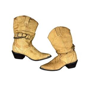 Crush by Durango Scrunched Boots Women's 6 Tan Leather Mid Calf Y2K Cowgirl