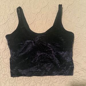 Gently used Align tank, no cup pads included. Fit is cropped. Im pretty sure the color is either black or a very dark purple so I flagged both.