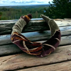 Adorn your head with a beautiful blend of colors with this luxurious crushed velvet headband. Handcrafted with intricate handsewn stitching, this headband features a soft-padded velvet surface that will rest gently against your hair. A striking combination of purple, sage gray, and brown creates a unique, one-of-a-kind look