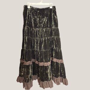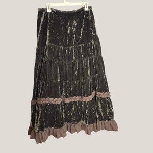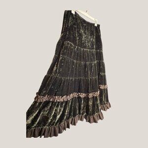 Crushed Velvet Maxi Skirt – Boho Tiered Ruffle Hem Long Skirt