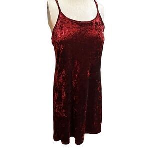 Crushed Velvet Y2K Red Slip Dress Messy Buns Lazy Days Scoop Neck Above Knee M