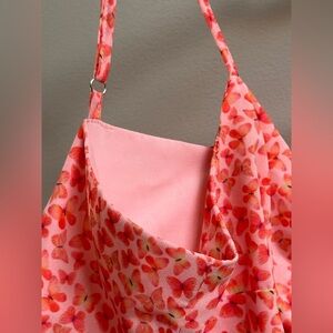 New without tags. No longer sold. This 90s-inspired mini dress features a playful butterfly print in soft cry baby pink with a feminine bow detail at the bust. Adjustable straps allow for a perfect fit, making it a cute and flirty addition to your wardrobe for spring and summer occasions.