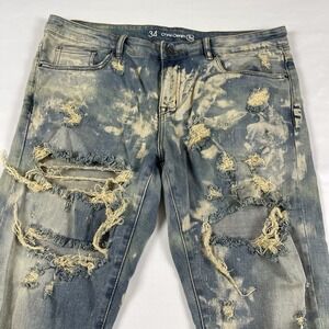 Crysp Denim Mens Jeans Distressed Acid Wash Zippered Ankle Size: 34