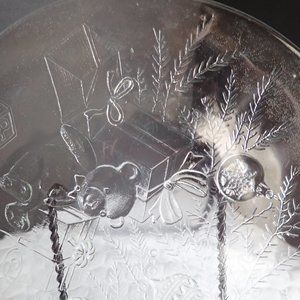 Crystal 12 1/2" Round Chop Plate Teddy Bear Christmas Scene