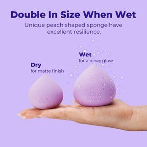 Unique peach shaped sponge have excellent resilience, grow to about twice the size when wet with water, wet for a dewy glow and dry for matte finish.