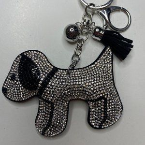 Crystal Avenue, NWT, black and silver rhinestone puppy key chain with ball and tassle. Measures 4" x 3". HB 6 box 3