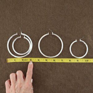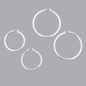 Crystal Avenue Premium Genuine Brass Hoop Set Of 2 Womens Silver Minimalist NWOT