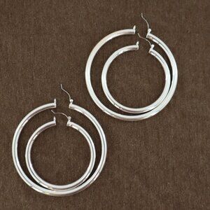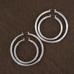 Elevate any outfit with these chic silver hoop earrings. Whether you're heading to a meeting or a party, these hoops will make your ears the talk of the town. Perfect for those who like their accessories to be as versatile as their wardrobe choices.