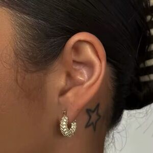 Elegant gold hoop earrings. Sparkling design. Perfect for any occasion.