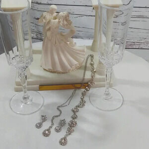 Crystal Backless Wedding Dress dress & Evening Dress Necklace & Earings Set