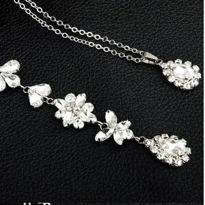 Crystal Flower Bridal Backless Necklace Women Long Backdrop Necklace for Wedding Dress or Evening Dress. This would be Stunning with any Backless Wedding Dress or Evening Dress. Please check the. pictures out for measurements for necklace