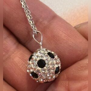 Crystal Ball Necklace Pendant 925 Sterling Sliver Soccer Motif 4010 B