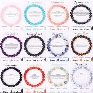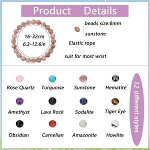 Features: This set includes 12 different 8mm semi-precious gemstone bracelets, each with its own unique vibe — from calming amethyst to energizing tiger eye and grounding obsidian. The stretchy, sturdy elastic makes them easy to slip on and off, perfect for stacking or wearing alone. Suitable for both women and men who love a touch of natural style.