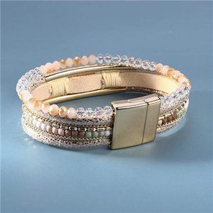 Crystal Beaded Leather Wrap Bracelet - Boho Cuff Stone Charm Bracelet