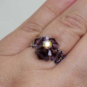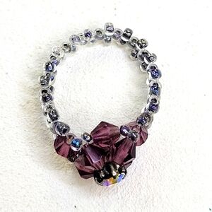Brilliant Purple/Gray Glass Beads Floral Ring
