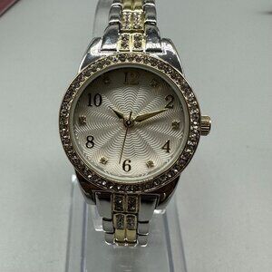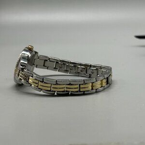 Crystal Bezel Watch Women Silver Gold Two Tone Scallop Print Dial 7.75 Inch