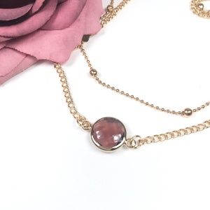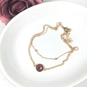 Beautiful gold toned fashion anklet with deep purple crystal accent and gold beaded chain.