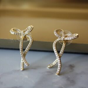 These gorgeous crystal bow earrings are 1 1/2 inches long and 5/8 inches wide. They are durable and lightweight, so they are resistant to bending but will not make your ears sore after a full day of wear. Delicately layered zirconia crystals create texture and volume, allowing any ensemble to bloom.