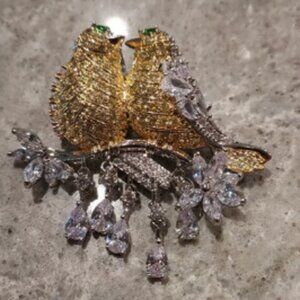 -2" crystal brooch/pendant of birds on a tree branch with flowers. Stunning piece and in pristine condition. Worn once.