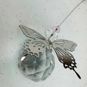 Enhance your home and garden decor with this exquisite crystal butterfly suncatcher. It casts vibrant reflections, adding charm and elegance to any setting.