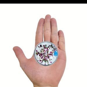 This bundle comes with two of these candles! The smell of this vanilla candle is so warm, cozy and will make your home, office, store smell amazing. Not only is the smell amazing, but the aesthetic is absolutely beautiful. A mix of dried flowers on the top with a beautiful blue crystal on the inside that you can keep forever. This is a small candle, which is shown in photo, but it does last for up to 30 hours. There is a great description in one of the photos, and the size as well. You will love this, and it would make a great gift!