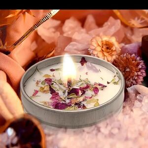 Crystal Candle Bundle Two Vanilla Candles w/Dried Flowers & Crystals (Small)