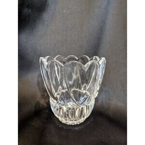 Vintage 1970's Shannon Hand Cut Crystal Votive a Holder/Small Candy Dish With Heart Design, Scalloped Edges Collectible Display Item