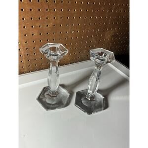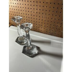 Crystal Candlestick Candle Holder, Pair 7" Tall, Heavy
