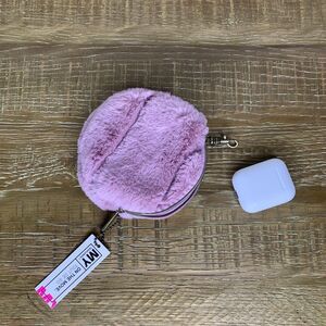 MYTAGALONGS womens accessories bag pouch coin purse tech organizer ear bud case travel crystal gemstone carrying amethyst minx faux fur charm fur key fob