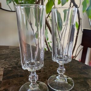 Elegant crystal champagne flutes perfect for any celebration. These clear glasses add a touch of sophistication to your dining experience.