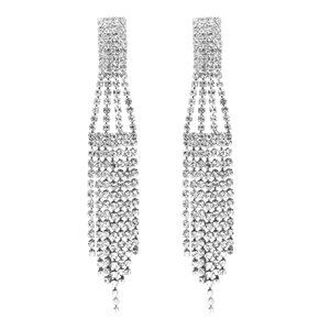 Silver rhinestone earrings feature delicate and unique geometric shapes and long chain tassels design, bringing a touch of sophistication and glamour to your look.