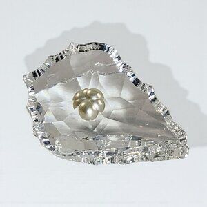 Vintage crystal clam shell figurine, faceted clear glass with pearl (likely faux pearl) center.