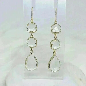 These Crystal Clear Dangling Bezel Earrings are the perfect statement piece. With a 2.4” length, they are a subtle yet eye-catching, made of sparkling glass for a classic, timeless look.