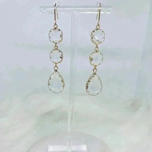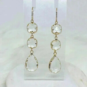 These Crystal Clear Dangling Bezel Earrings are the perfect statement piece. With a 2.4” length, they are a subtle yet eye-catching, made of sparkling glass for a classic, timeless look.