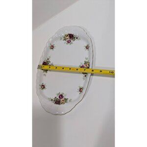 Crystal Clear Fine Porcelain Oval Platter With Rose Design & Gold Trim