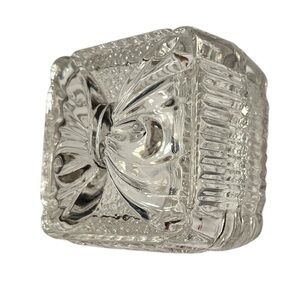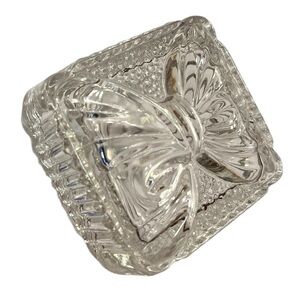 This exquisite Lead Crystal glass accent box features a charming bow design on its lid, adding a touch of beauty to any decor. The textured, cut-glass pattern with vertical ribbing enhances its sophisticated appeal. Perfect for storing your small trinkets or jewelry.