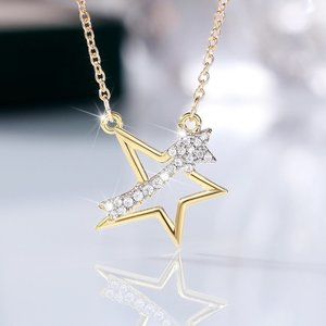 🌸Crystal Clear Micro Pave Hollow 14K Gold Plated Star Pendant Necklace,MARR9009