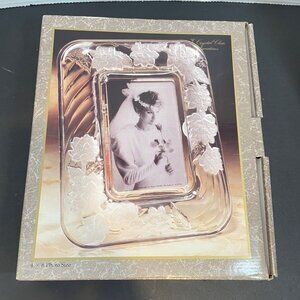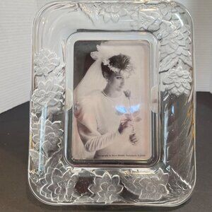 This elegant crystal photo frame with a frosted floral design enhances home decor while preserving cherished memories. Ideal for a 4x6 photo display.