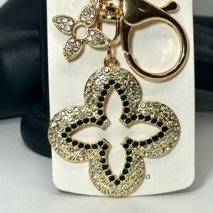 Crystal Clover Keychain Charm - Black & Gold Accent