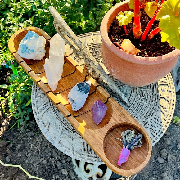 This alchemist crystal board can be your spiritual tools or even a statement piece of art/decor for your home. If you are interested in use that’s more than just decor, let me know so I can attach a full benefits and uses breakdown of each item to your order. This also comes with the FREE lil satchel of assorted crystals as a thank you. 🩷