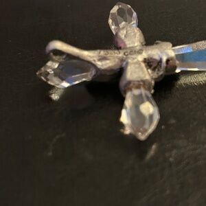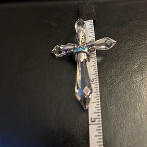2 1/2 inch multifaceted aurora borealis cross with 3 blue crystal at its center