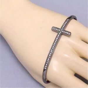 Gunmetal/Hematite Fashion Crystal Cross Hand Cuff Bracelet Hand Jewelry