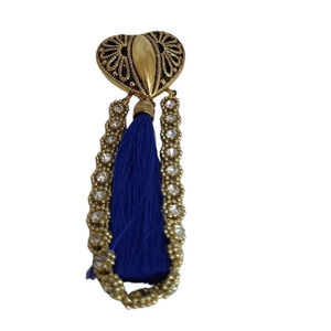 Crystal Dangle Heart Gold Cobalt Blue Tassel Pin