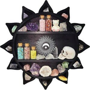 🧿Chakra-inspired Design: This Floating Wooden Lotus Shape Display Shelf is inspired by chakra. It features an concordant and symmetrical lotus flower shape with exquisite see-through cutouts of the sun, the moon and star in the middle, looking aesthetic, elegant and attractive to perfectly match with different crystals and decor styles.