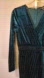 Chic stretchy velvet dress with shimmering small rhinestones. Long sleeves and wrap design. Perfect for evening wear. Wrap design on the lower half is design only and doesn't open, which is nice for those who like to cross their legs. Non-smoking home with cat and dogs. No rips or stains or holes. See pictures for description and measurements and condition. Keep in mind with measurements that the fabric stretches and is approximate.