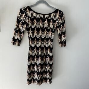 Crystal Doll Junior's Black Sequined Short 3/4 Sleeve Bodycon Party Dress XS