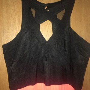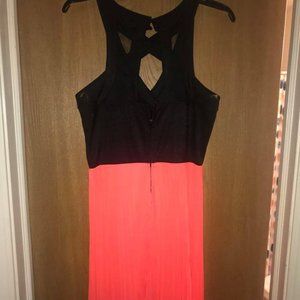 Crystal Doll Long Dress Size 11 in Juniors. Perfect long dress for a party, celebration, graduation, etc. The top is black and the bottom is slightly pleated in orange. (Never worn)