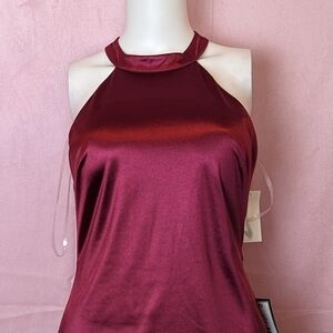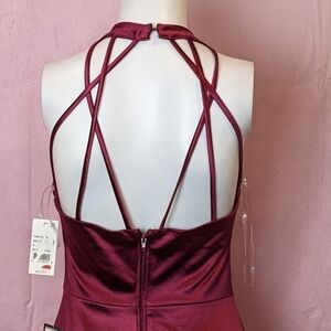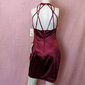 Crystal Doll Maroon Red Satin Strappy Halter Mini Bodycon Special Occasion Dress